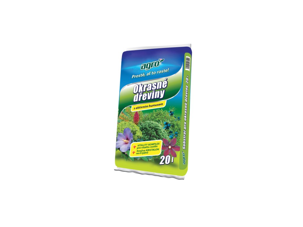 AGRO substrát na okrasné dreviny je špeciálne namiešaný pestovateľský substrát vhodný pre výsadbu ihličnanov, listnatých okrasných drevín, kríkov a živých plotov. Obsahuje kvalitnú rašelinu, kompostovanú kôru a ďalšie prírodné zložky, ktoré zaručujú dobrú priepustnosť vzduchu, optimálnu schopnosť zadržiavať vodu a správnu štruktúru pôdy.