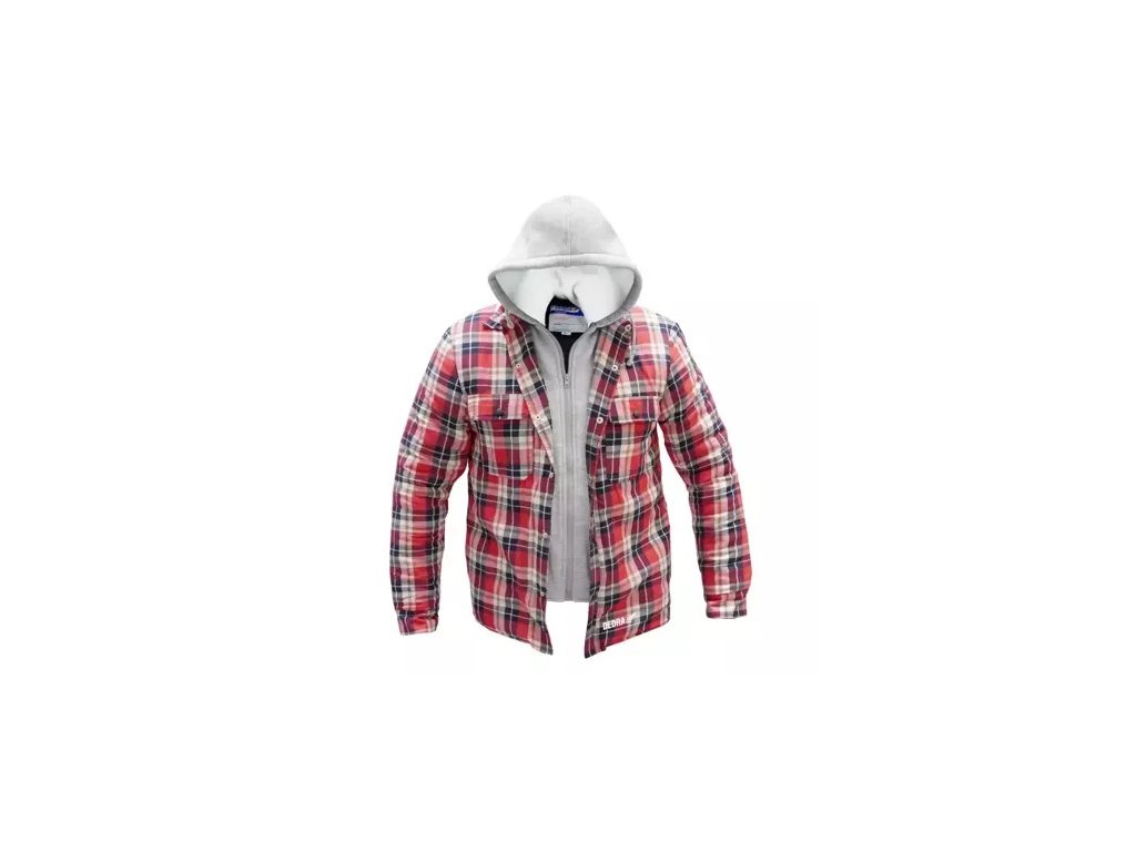 Flanelová bunda je vyrobená zo 100 % bavlny s gramážou 105 g/m² vo vrchnej vrstve. Kapucňa s flísovou podšívkou a sivé vložky sú vyrobené z 80 % polyesteru a 20 % bavlny s gramážou 280 g/m². Blúzka je vypchatá polyesterovouvýplňou. Vďaka rôznemu množstvuv ý p l n e je blúzka pohodlná a tepelne vhodná. Telo je vystlané 140 g výplne a rukávy 120 g výplne. Vďaka taftu (klzká podšívka na trupe a rukávoch) sa rukávy pri nosení bundy nevyhrnú. Blúzka sa zapína na gombíky na vrchnej strane a na zips na vnútornej strane.Blúza má dve vrecká na prsiach a dve otvorené bočné vrecká. Manžety bundy sú otvorené a majú zapínanie na cvočky a zadná časť je zaoblená. Logo DEDRA na prednej strane mikiny. K dispozícii vo veľkostiach S-XXXL.